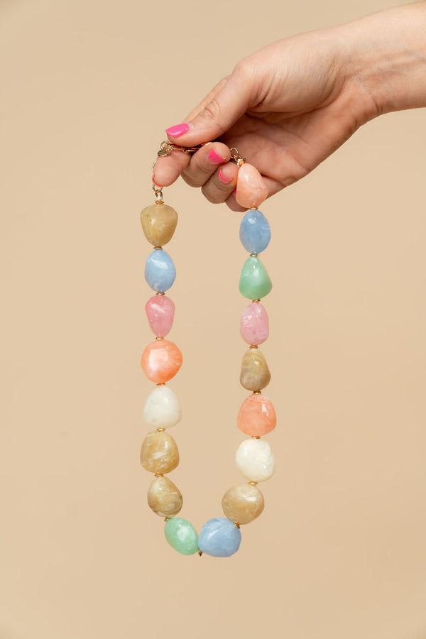 Light Pink, Blue, White, and Brown Acrylic Stone 16"-18" Necklace