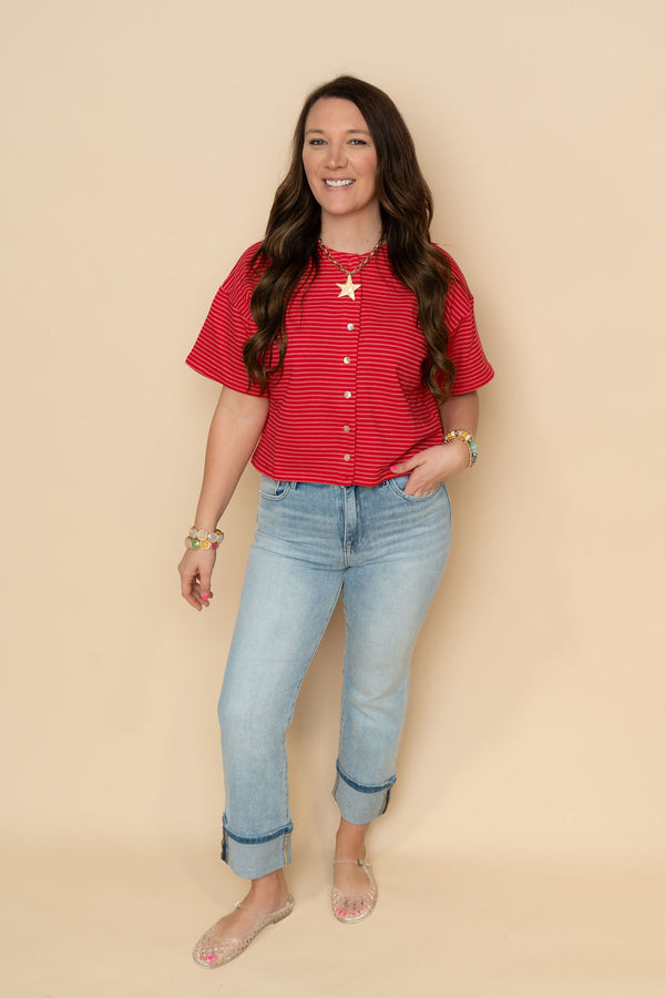Risen High Rise Ankle Cuffed Jeans - Light Wash