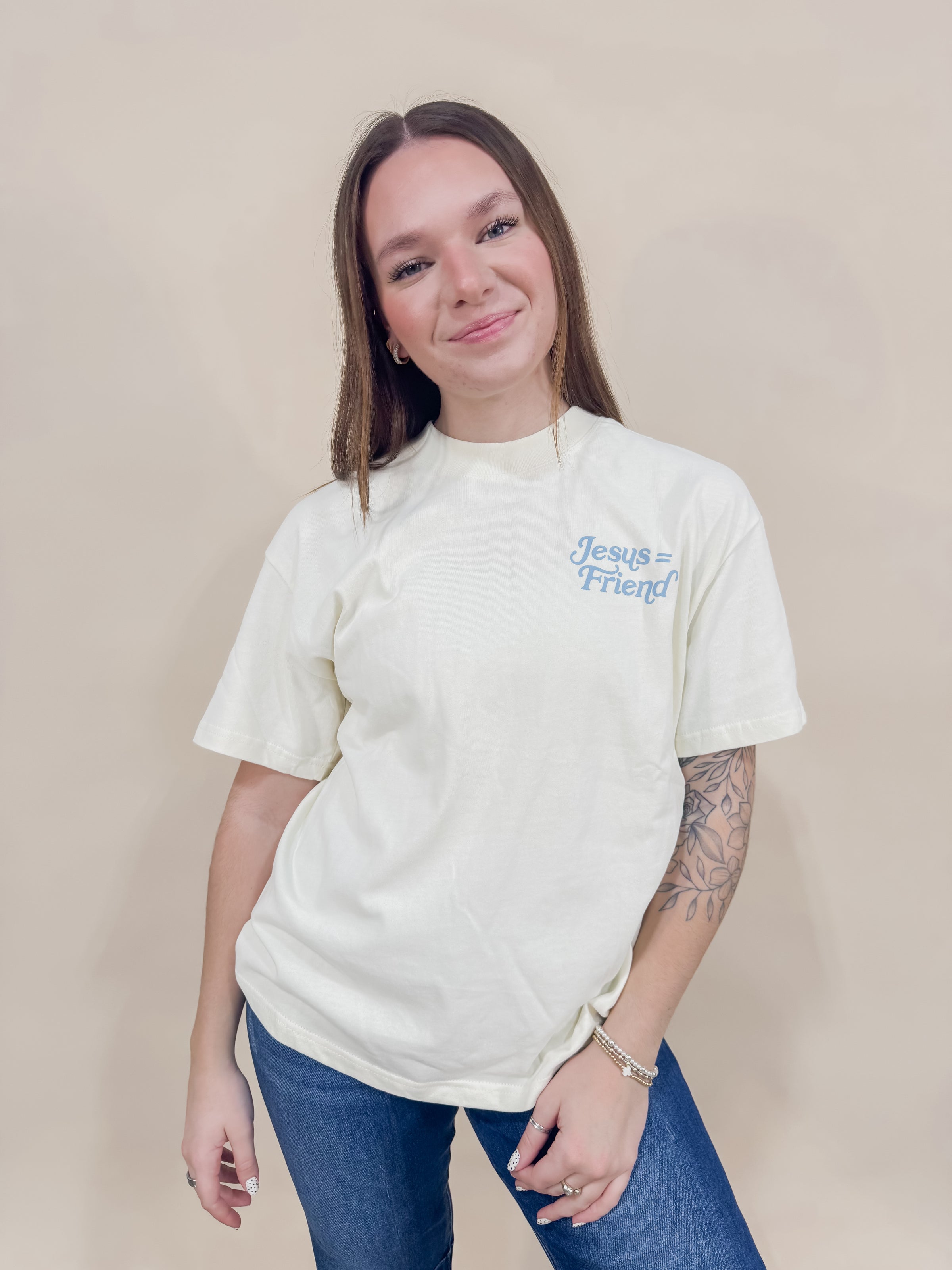 Wear your faith with style in this unisex graphic tee that doubles as a conversation starter. Featuring a bold, eye-catching design celebrating friendship and spirituality, it's perfect for casual outings, church gatherings, or just spreading good vibes. Soft, comfortable fabric keeps you feeling great all day long, while the trendy cut works for everyone. Express yourself authentically—because the best accessories are the ones that reflect who you are.