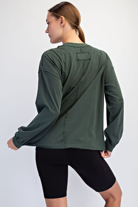 The Paige Washed Top offers cozy cotton comfort with a fun, pigment-washed look that adds laid-back charm. Its classic crew neck keeps things simple while the soft fabric invites you to wear it all day—perfect for those who love casual style with a little extra personality.