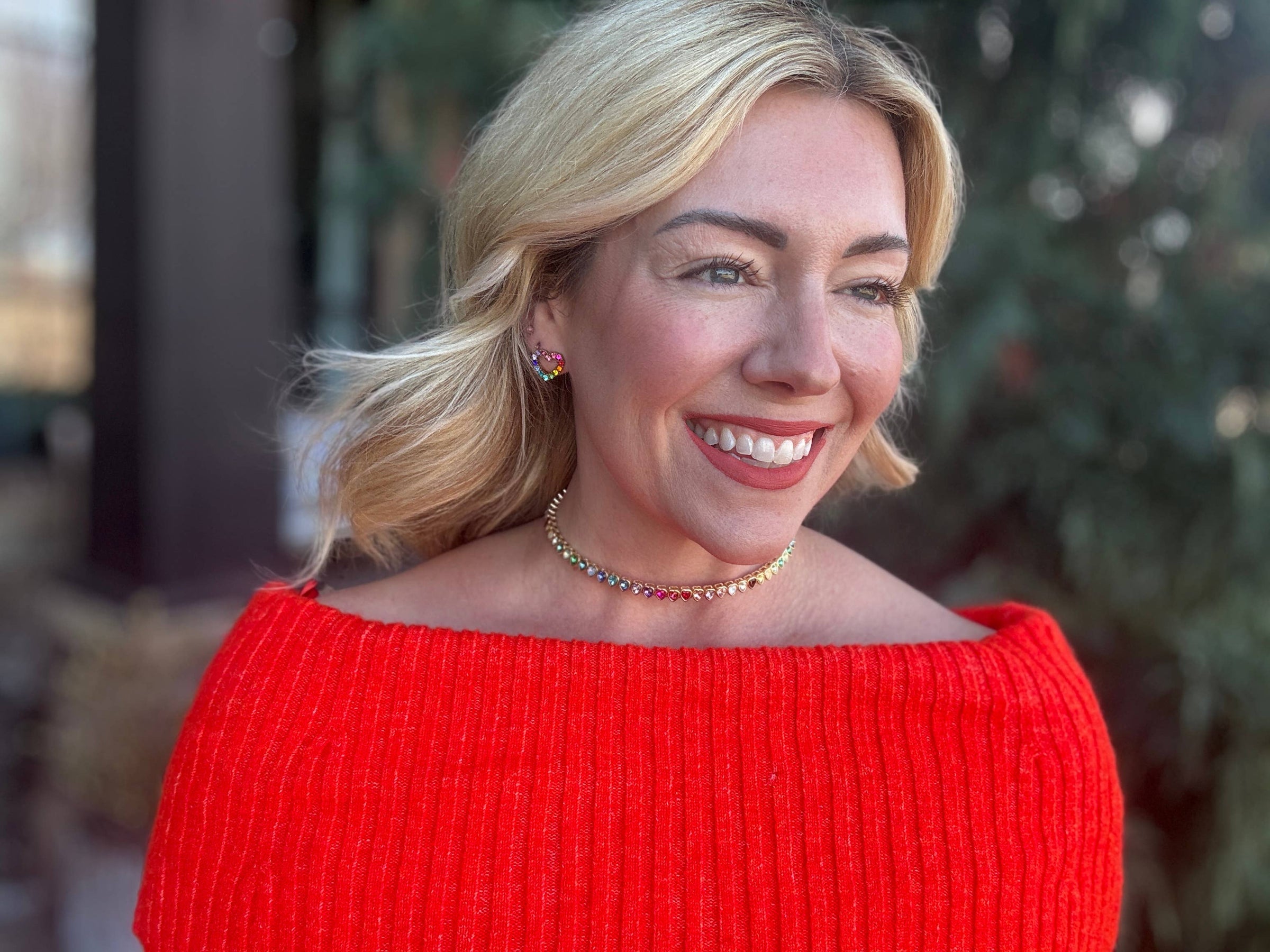 Amore Choker Necklace - Heart-Shaped Rainbow Stones