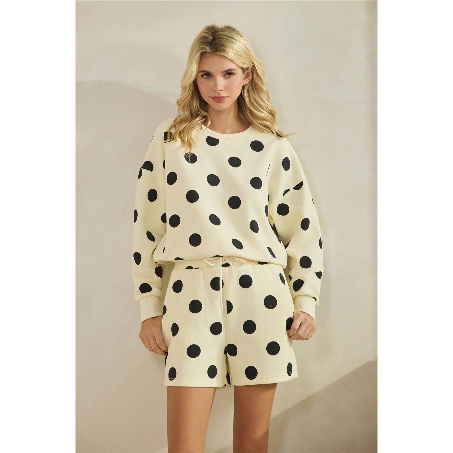 Cozy meets cute in these playful polka dot sweatshorts! Featuring a soft, comfortable elastic waist that moves with you, they're perfect for lounging at home, running errands, or casual hangouts. The classic polka dot pattern adds a fun pop of personality to your everyday wardrobe. Whether you're relaxing on the couch or heading out for a laid-back day, these shorts deliver comfort without sacrificing style.