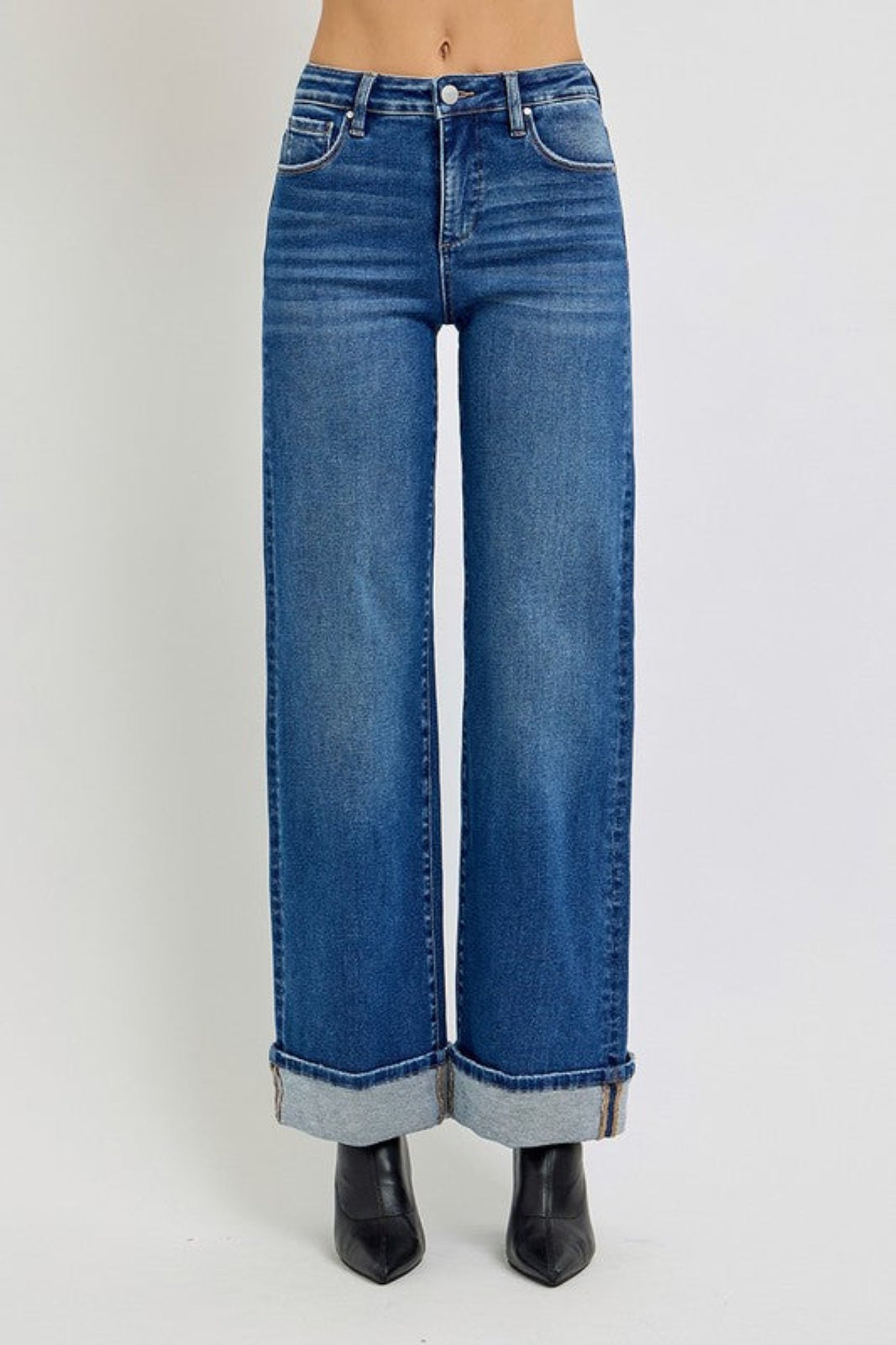 Step into comfort and confidence with the Risen Wide Leg Cuffed Jeans. Featuring tummy control and a high rise, they smooth and flatter your silhouette while the wide leg offers a breezy, relaxed fit. With a 34" inseam before the cuff, you can roll them up to a perfect 31" length for versatile styling. These jeans blend playful style with a flattering shape that moves with you all day long.