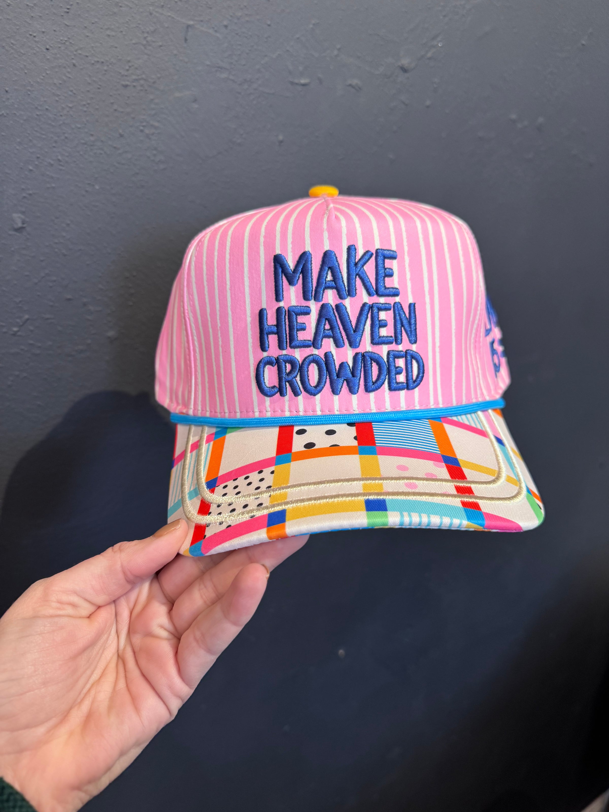 Bold, fun, and full of personality, the Make Heaven Crowded Trucker Hat is the perfect statement accessory for everyday style. This pink and white striped trucker hat features playful “Make Heaven Crowded” embroidery on the front, making it a meaningful piece that sparks conversation while adding a pop of color to your outfit.
