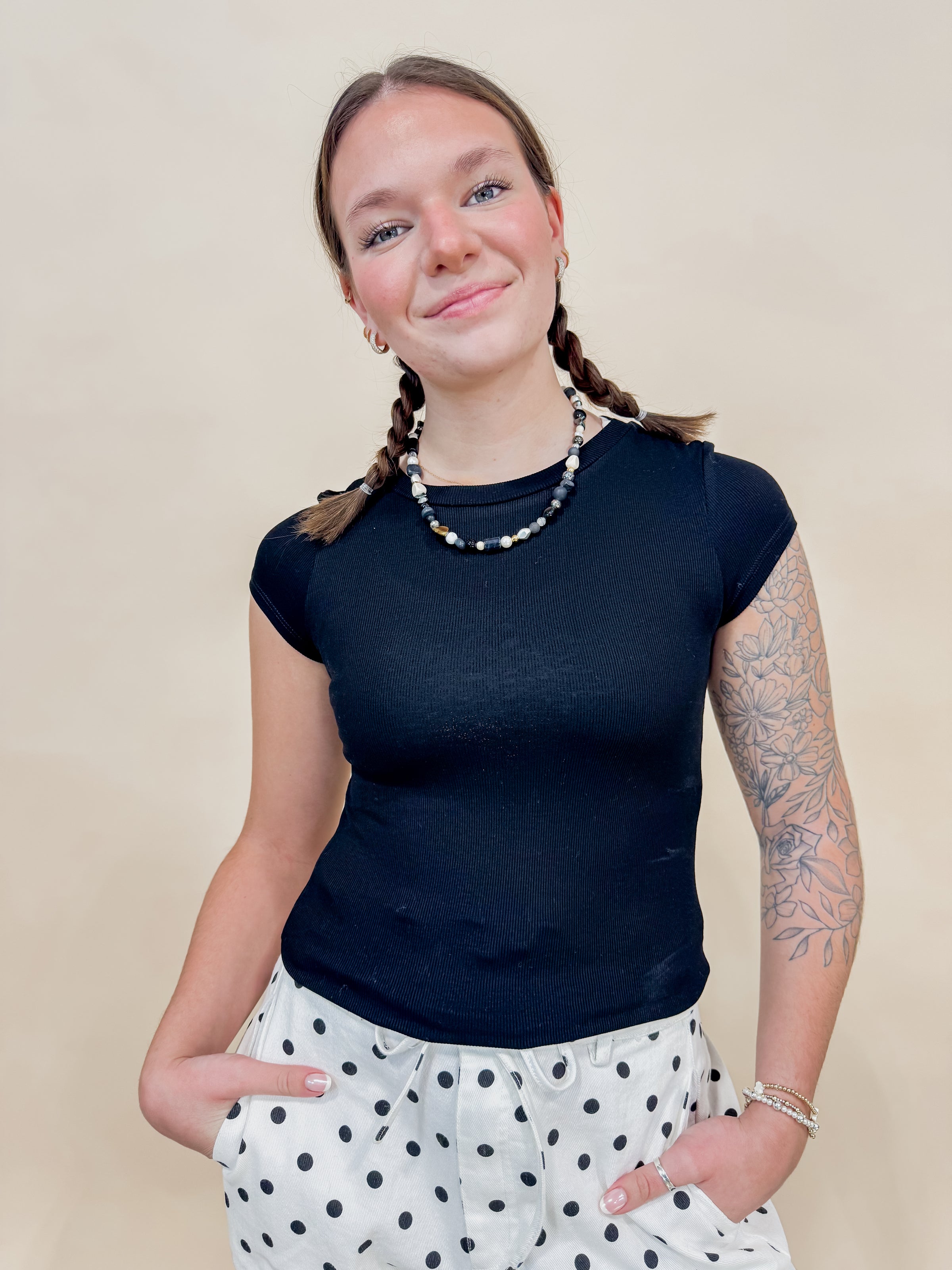 The Serena Ribbed Cap Sleeve Top is your new go-to for effortless style. Crafted from soft stretch cotton knit, this fitted tee hugs you in all the right ways while the breathable fabric keeps you cool and comfortable. Cap sleeves add a touch of charm, and the fabric's natural give means it moves with you—no stiffness, no fuss. Perfect for layering or wearing solo, this versatile piece works as hard as you do.